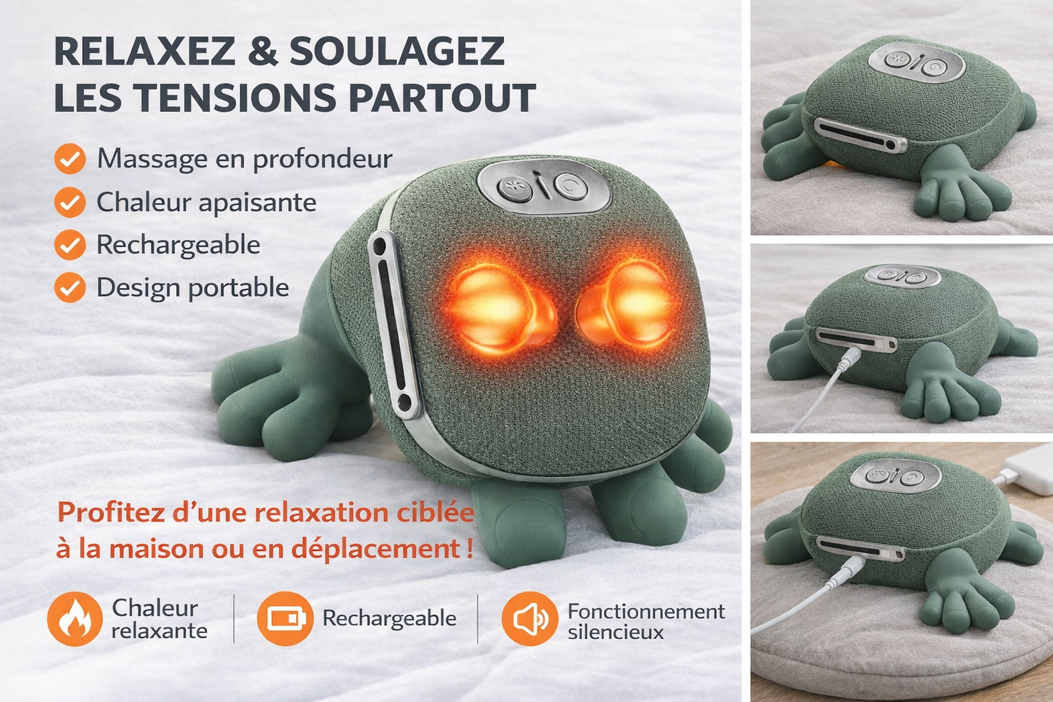 Le Masseur de Muscle Bionique combine chaleur thérapeutique et massage ciblé pour une récupération optimale après l'effort. Dites adieu aux tensions et courbatures !